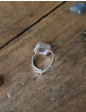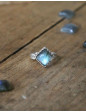 Bague réglable en argent avec une monture de forme géométrique contenant un cabochon de Labradorite.