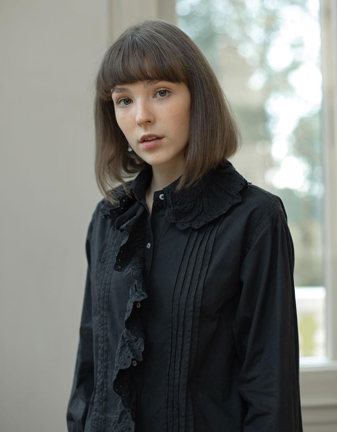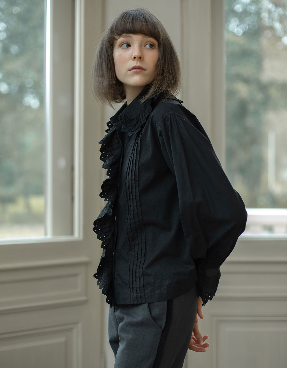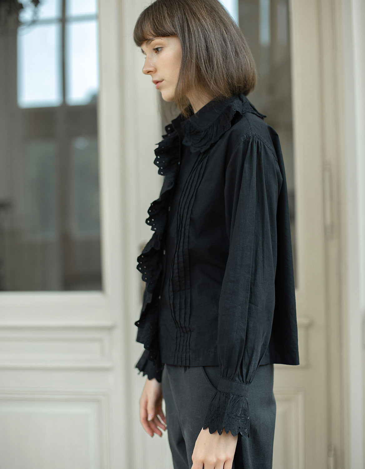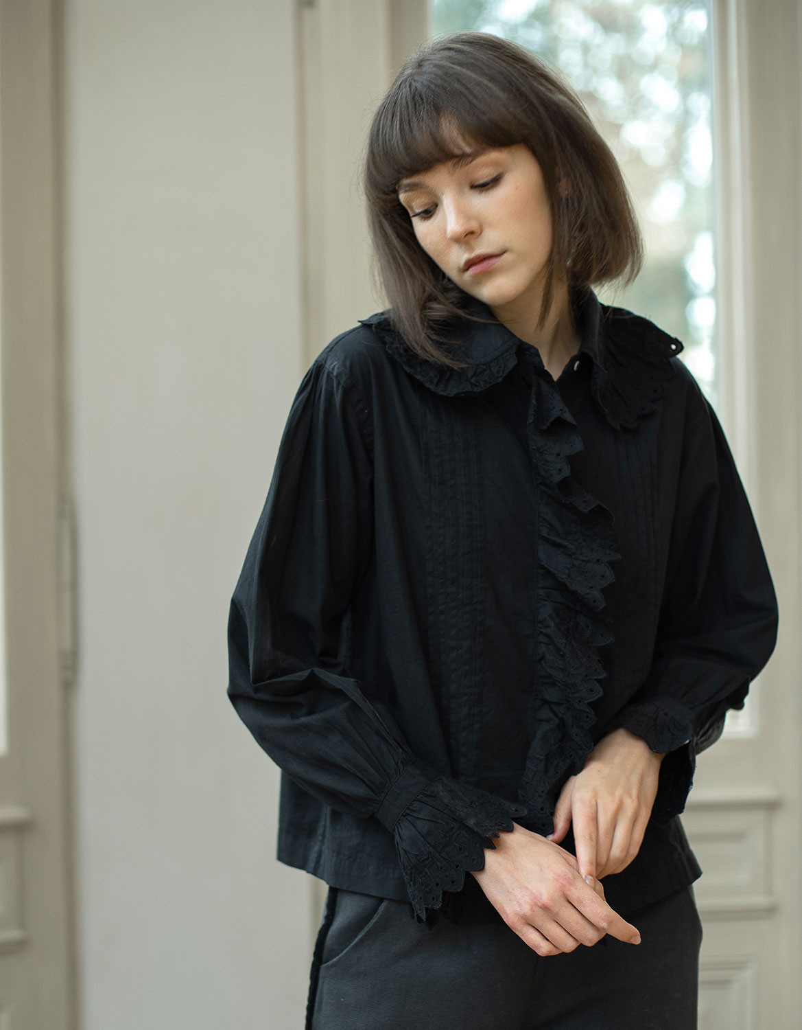 Description : Blouse à volants en popeline de coton avec des broderies anglaises. Coupe évasée.