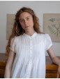 Description : Blouse légère, délicatement plissée, à col officier. Elle est accompagnée de son petit débardeur amovible en voile de coton.
