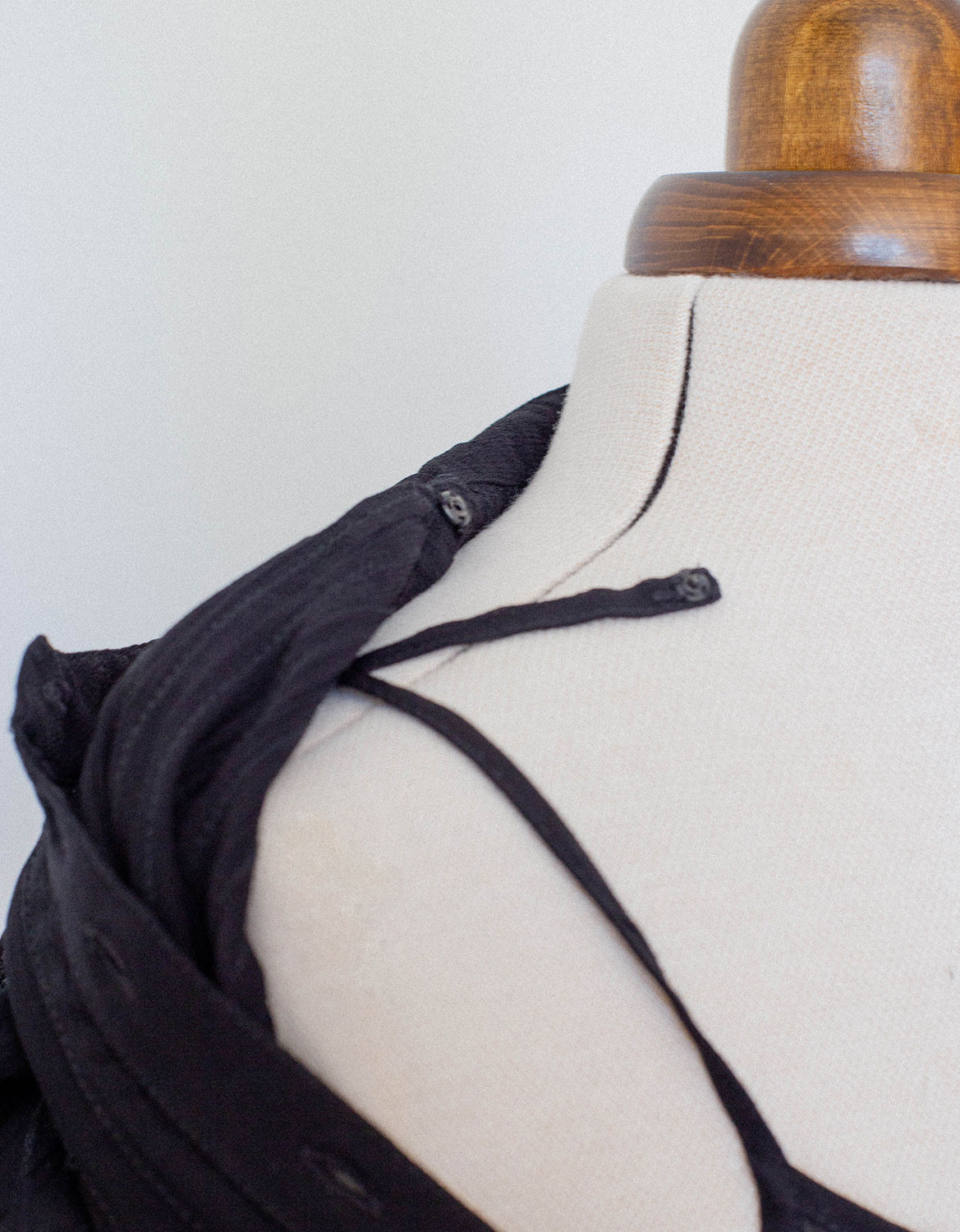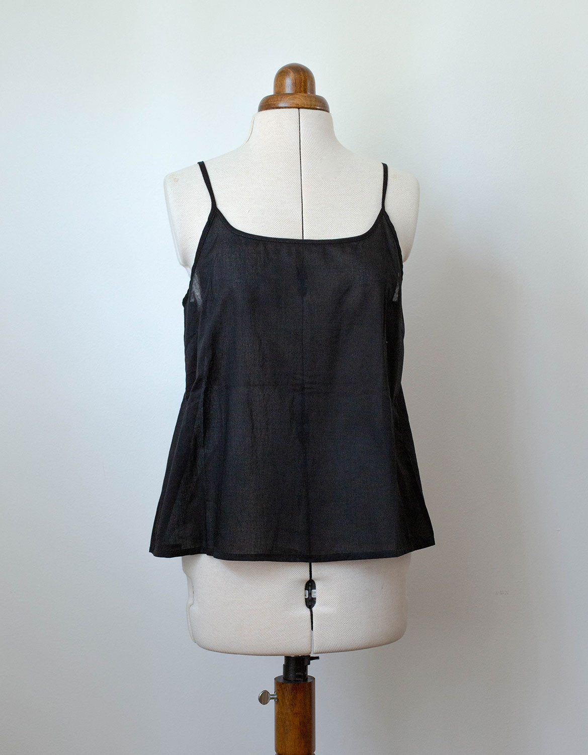 Description : Blouse légère, délicatement plissée, à col officier. Elle est accompagnée de son petit débardeur amovible en voile de coton.