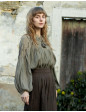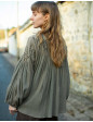 Blouse "Marla" en crêpe de coton brodé seigle