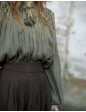 Description: blouse en crêpe de coton brodé avec des petits brins de blé et d’orge. Entièrement doublé sauf les bras.