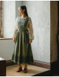Robe chasuble structurée, en canevas de coton épais, arborant une broderie de style ukrainien. La coupe est délicatement cintrée et flatteuse, se noue sur les côtés. Avec poches.
