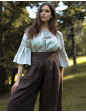Description : Pantalon palazzo long, en lin mélangé coton, avec des plis à la taille et un élastique au dos. Tissu un peu plus fin et estival que pour les autres couleurs.
