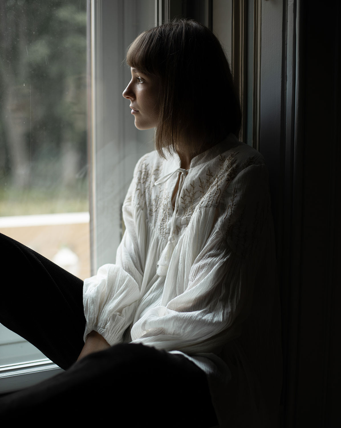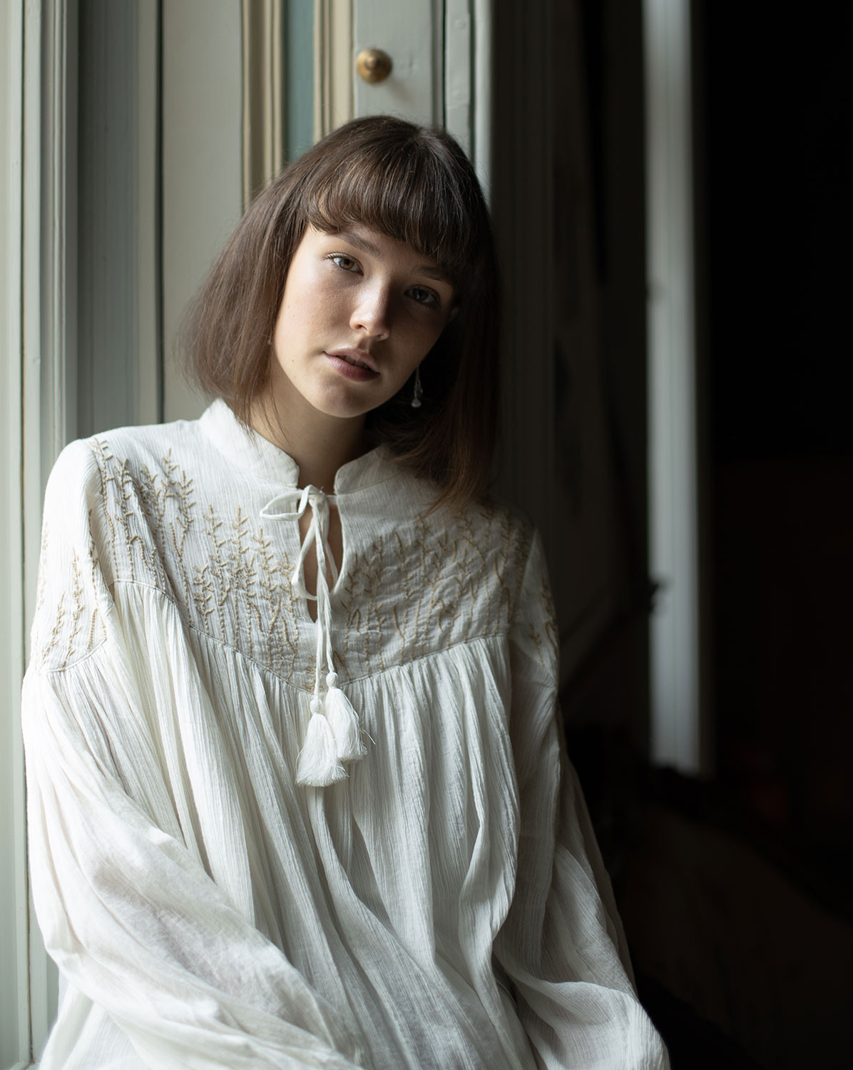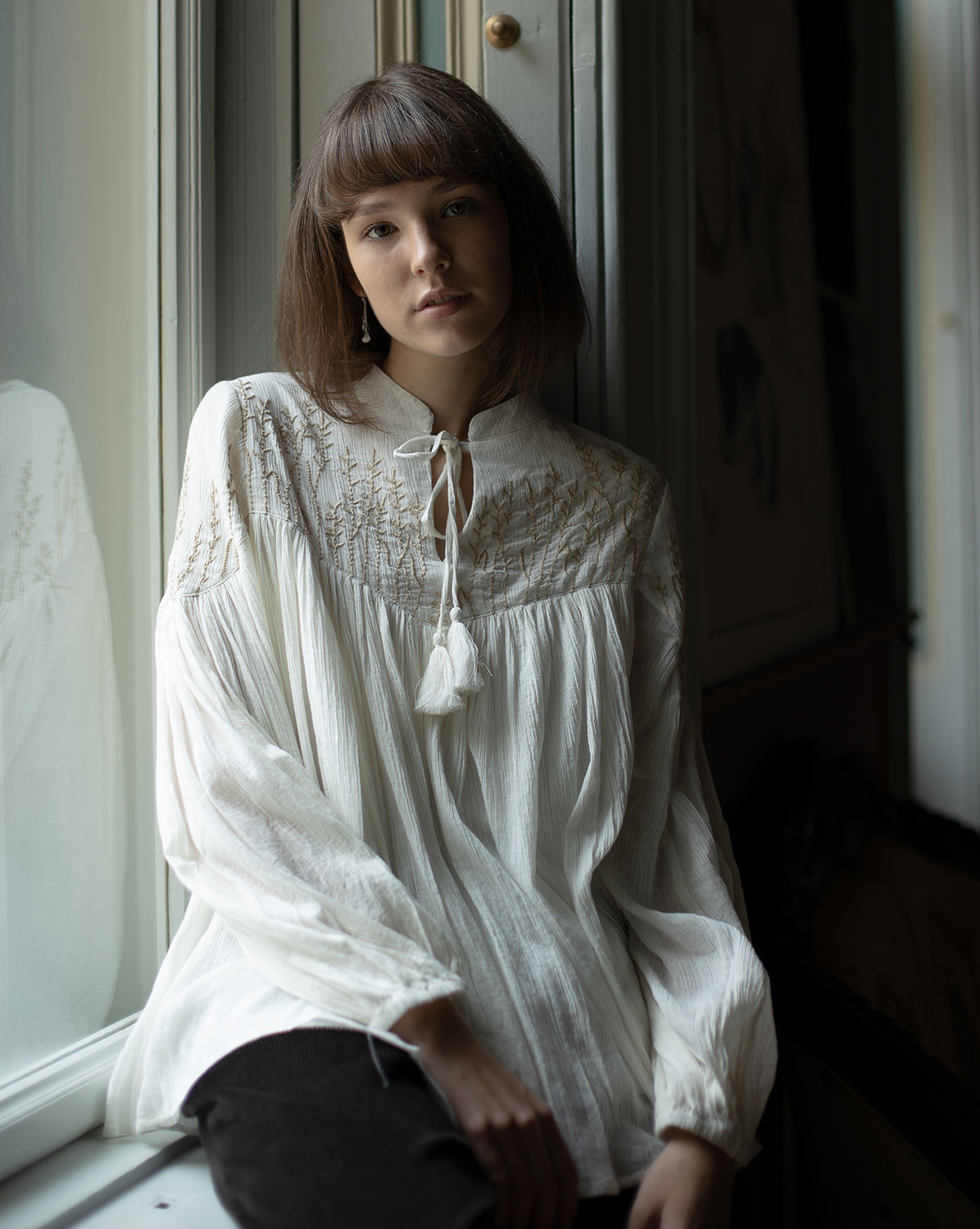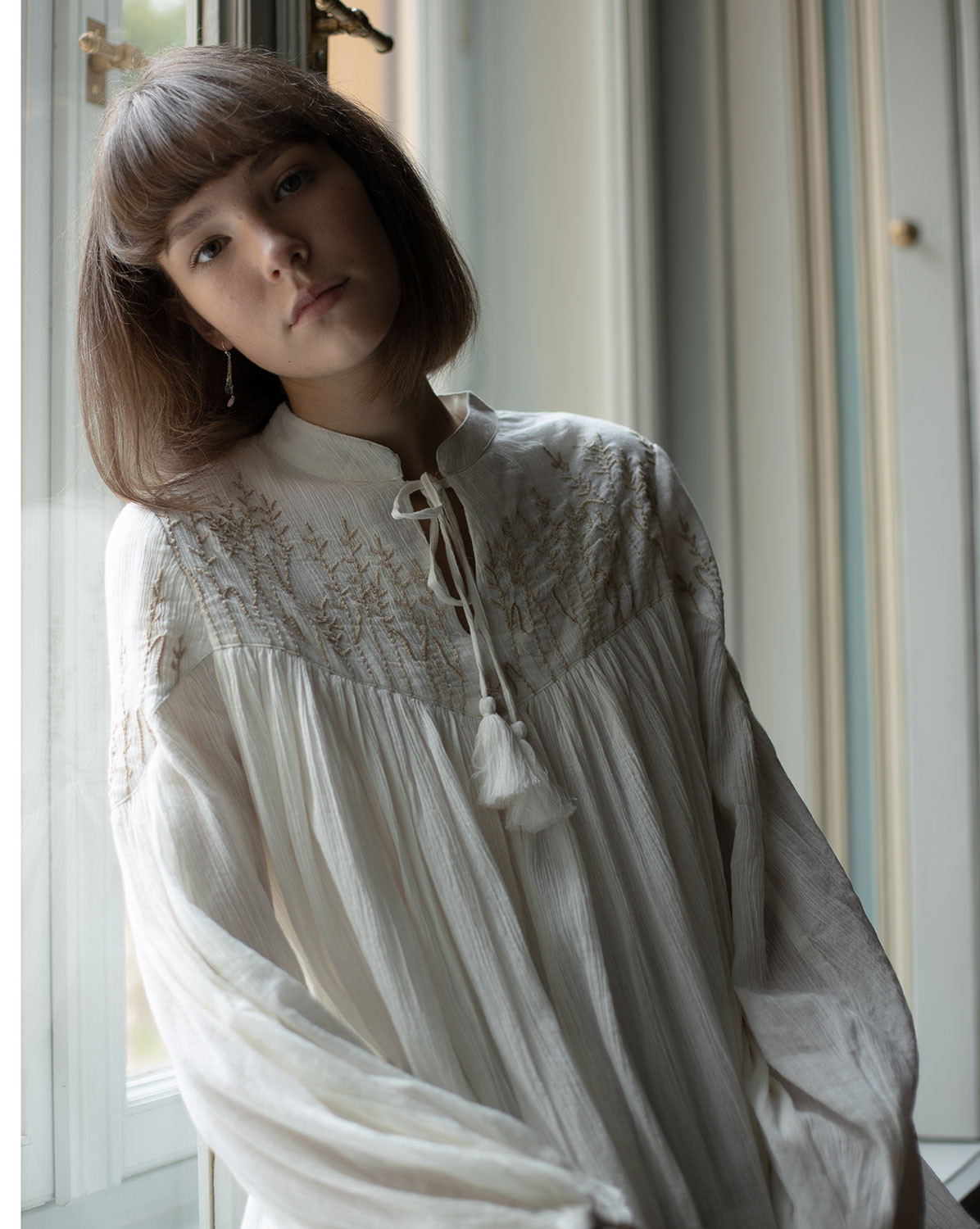 Blouse "Marla" en crêpe de coton brodé crème