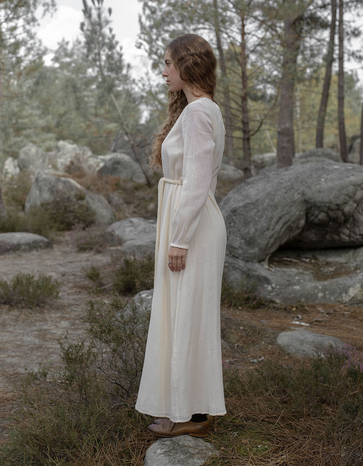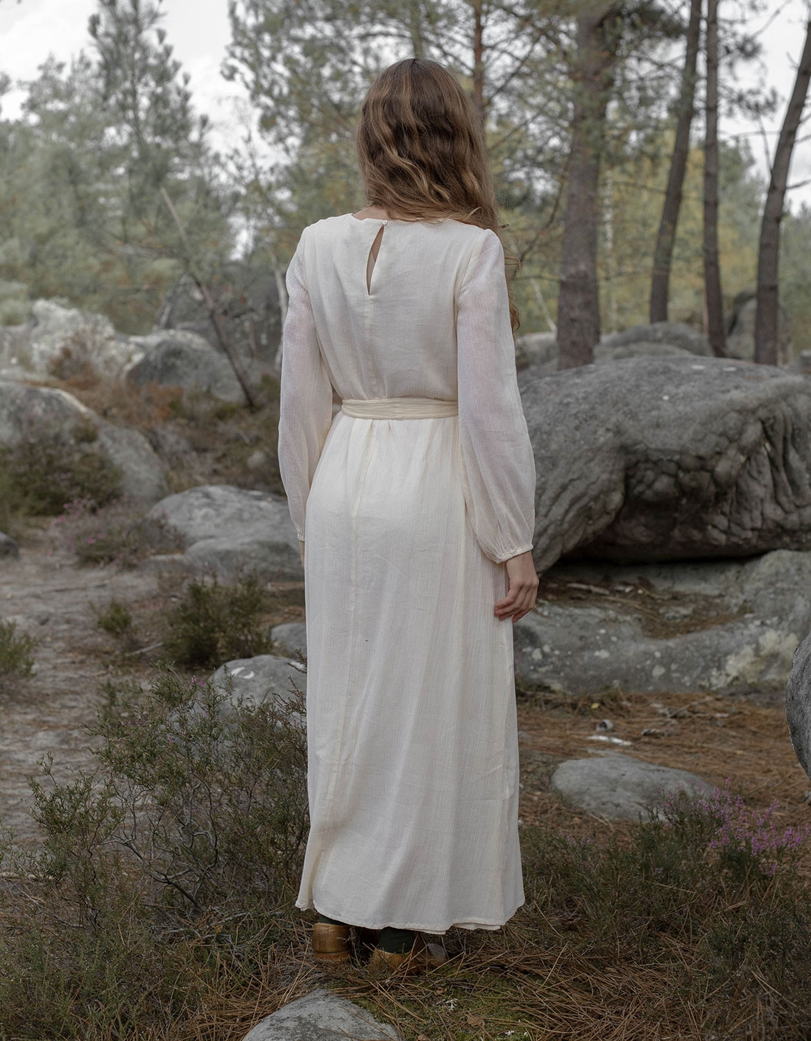Description: robe longue en crêpe de coton doublé de voile de coton avec une ceinture à utiliser ou pas selon les envies!