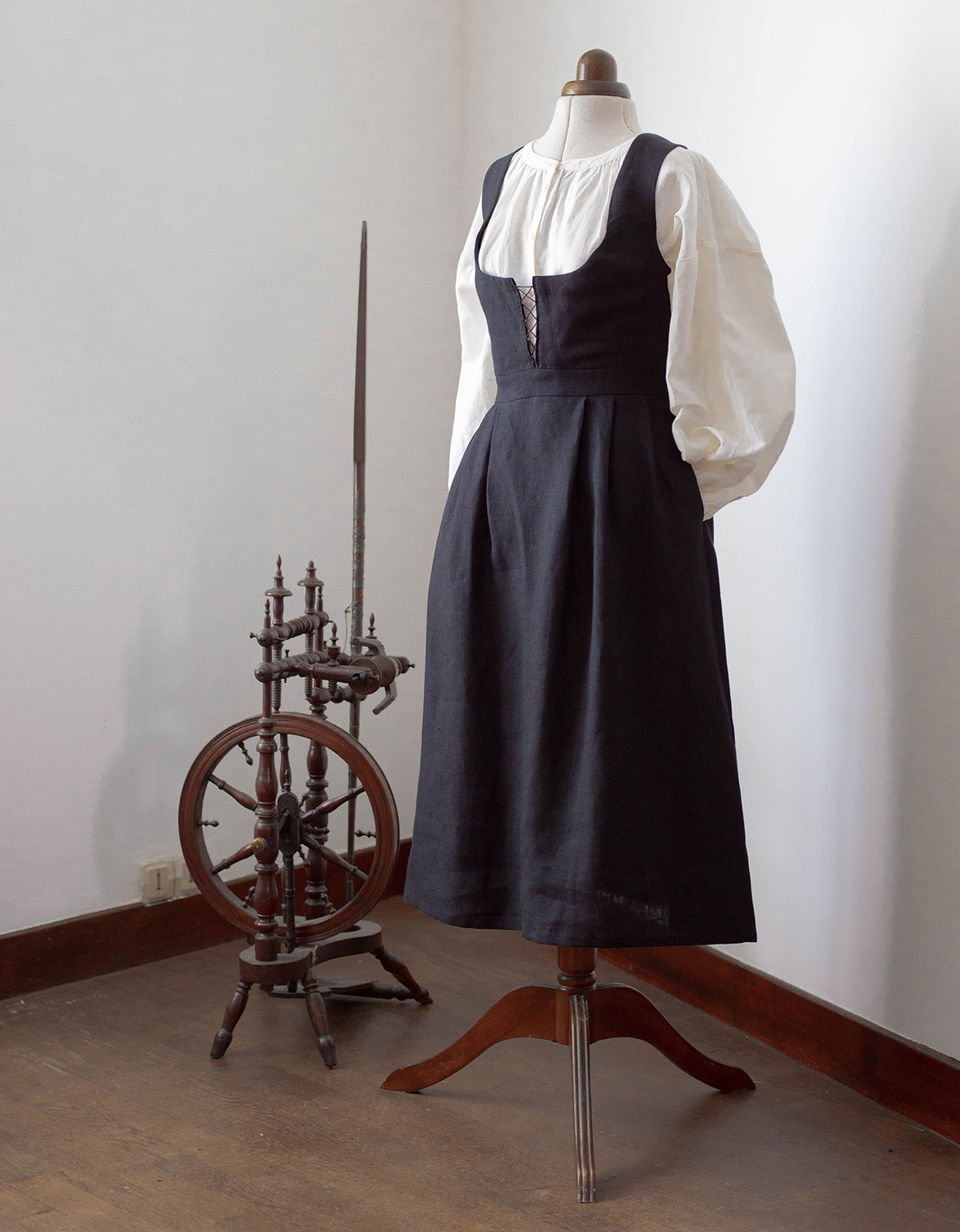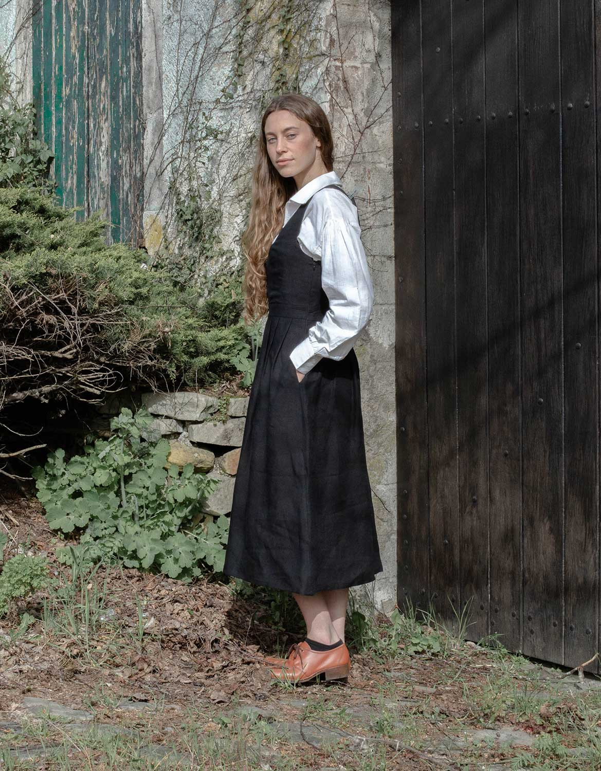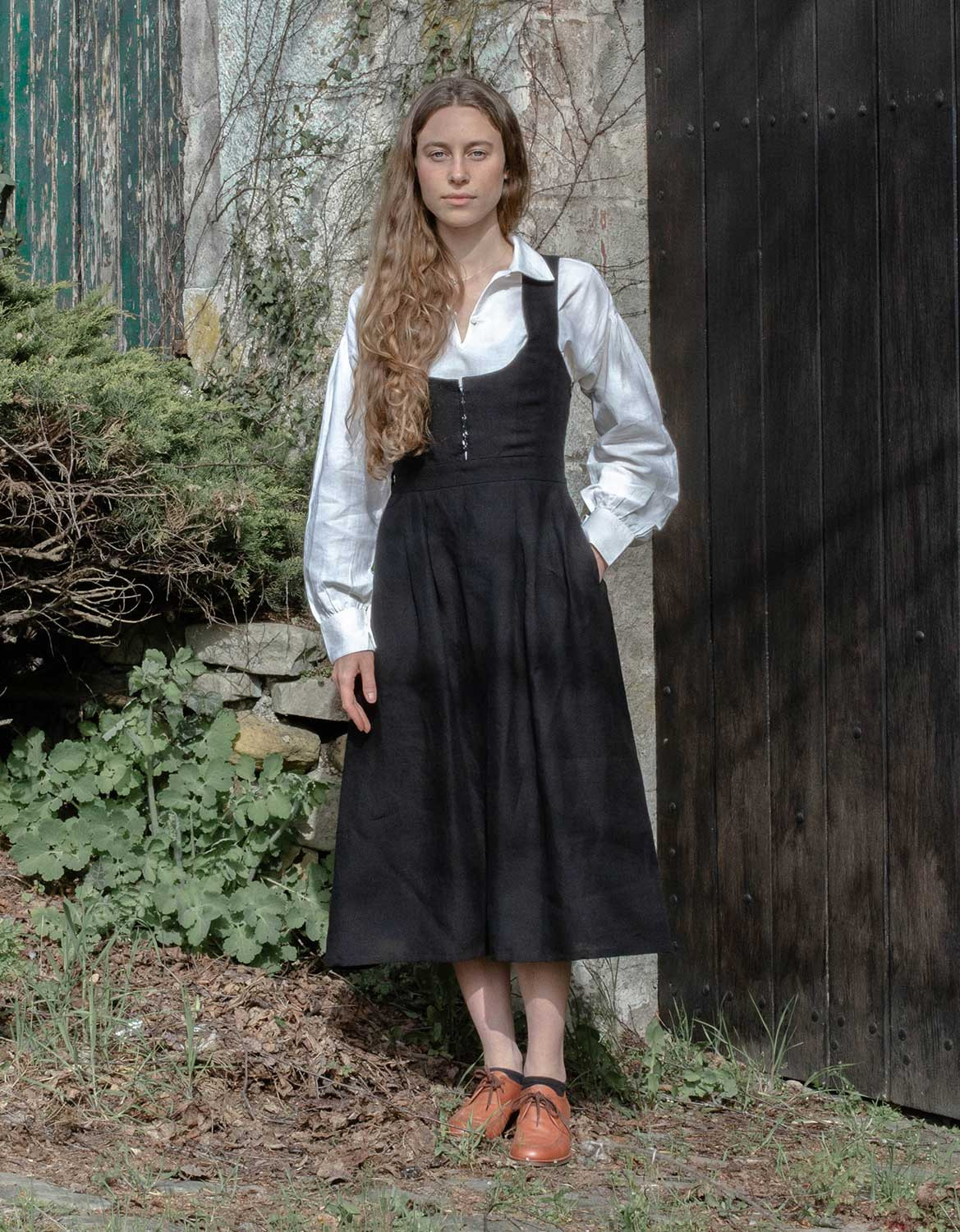 Description : Robe-bustier inspirée du « Bunad » de Bergen en Norvège, en lin bio, avec un joli laçage sur le devant. Le bustier a été développé de façon à marier les formes harmonieusement, peu importe le volume de la poitrine.