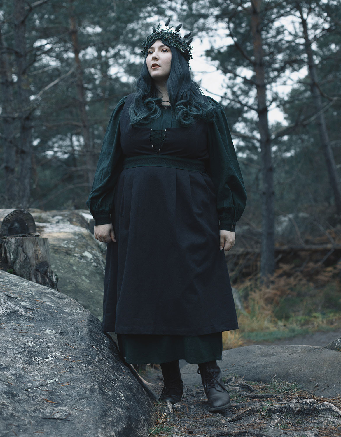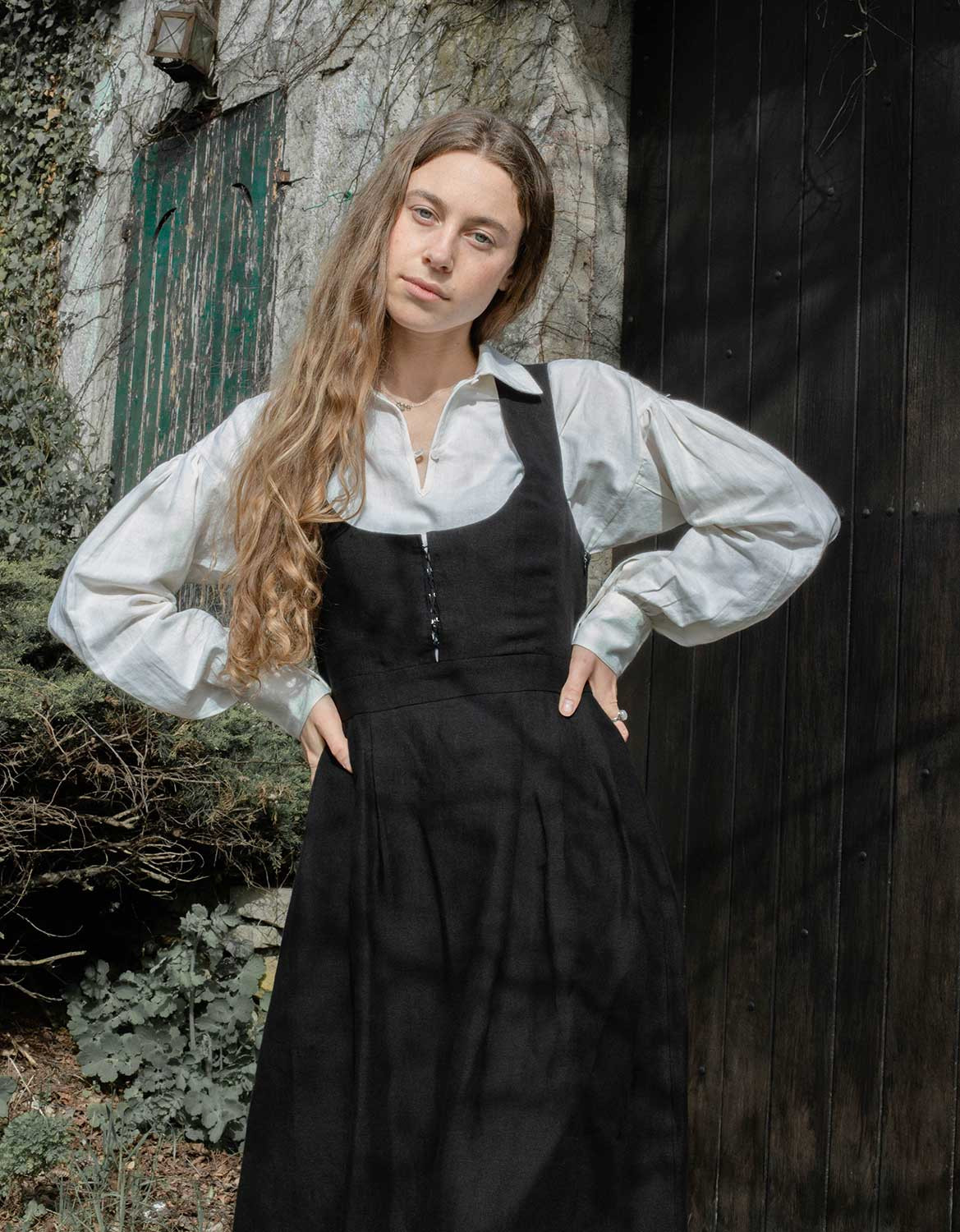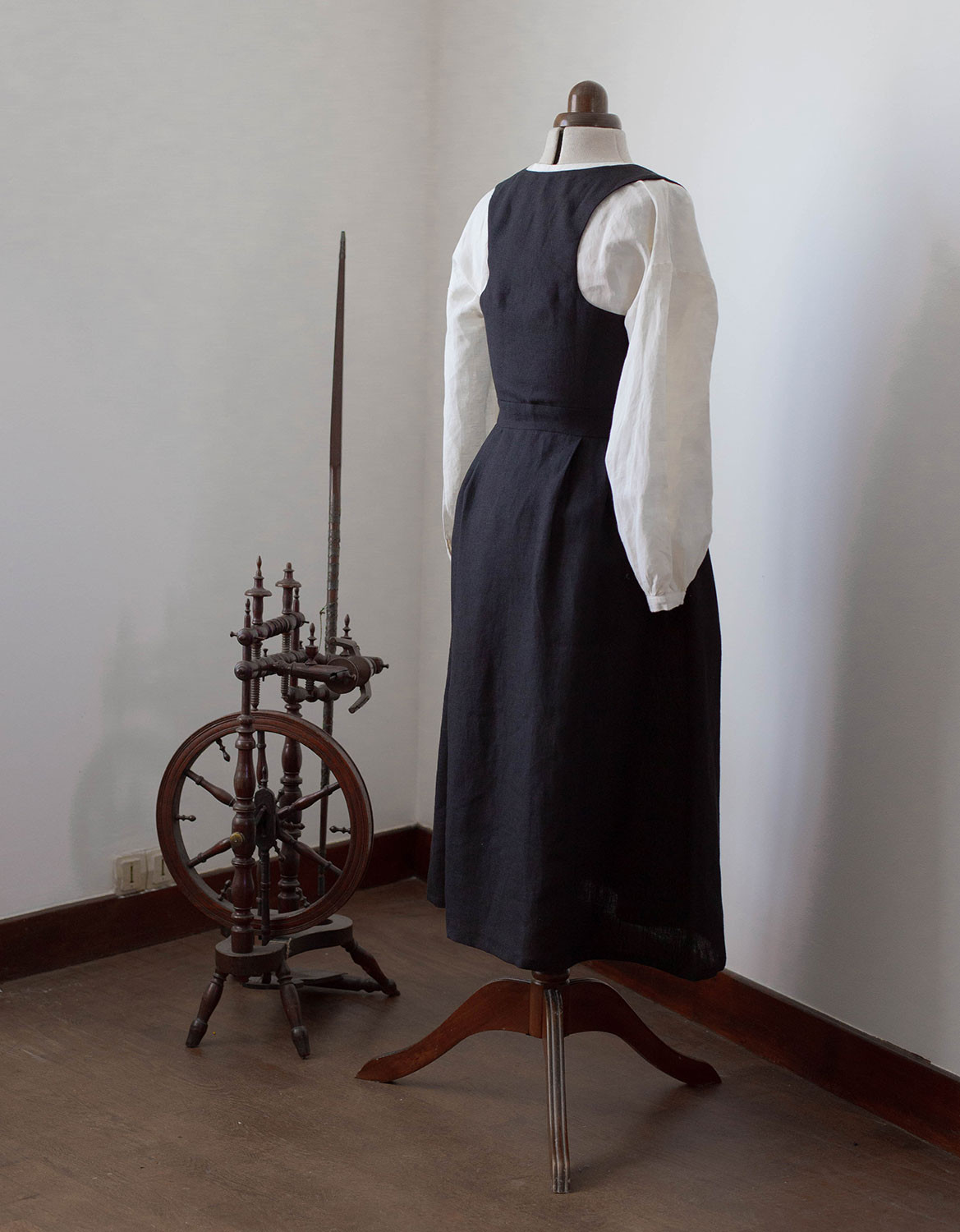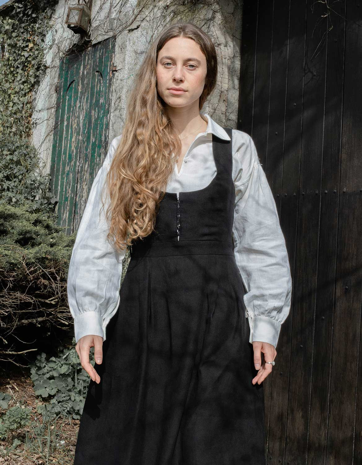 Description : Robe-bustier inspirée du « Bunad » de Bergen en Norvège, en lin bio, avec un joli laçage sur le devant. Le bustier a été développé de façon à marier les formes harmonieusement, peu importe le volume de la poitrine.