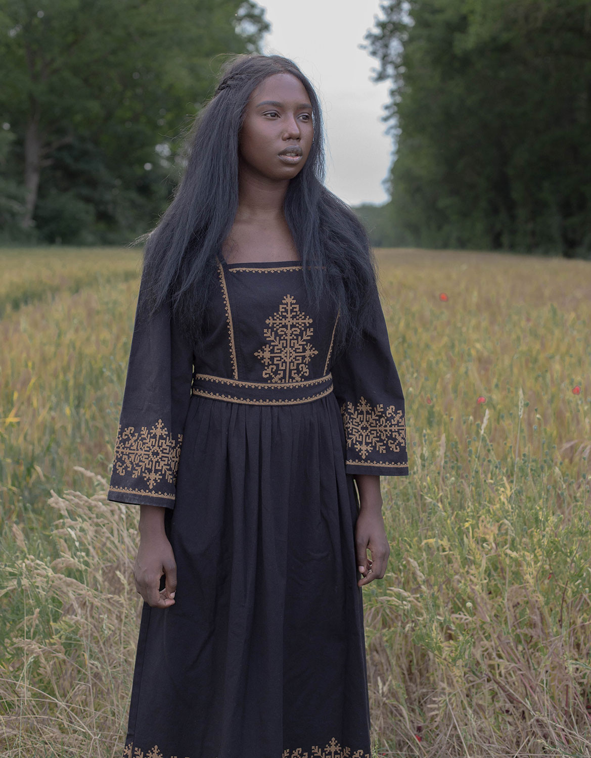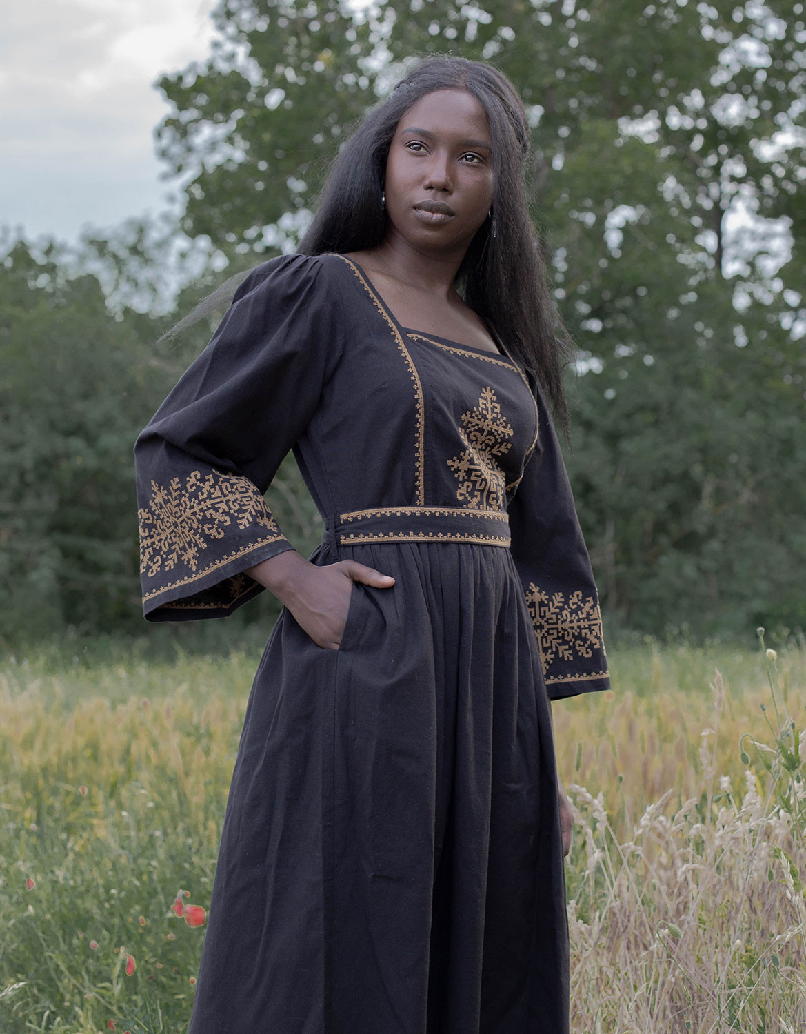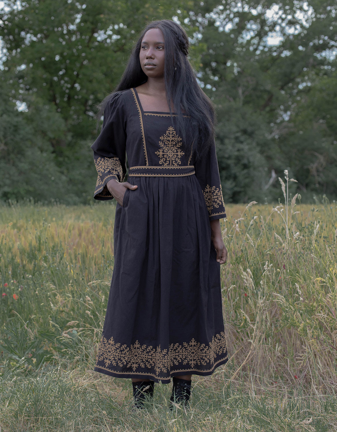 Robe brodée "Austra" arbre sacré noire