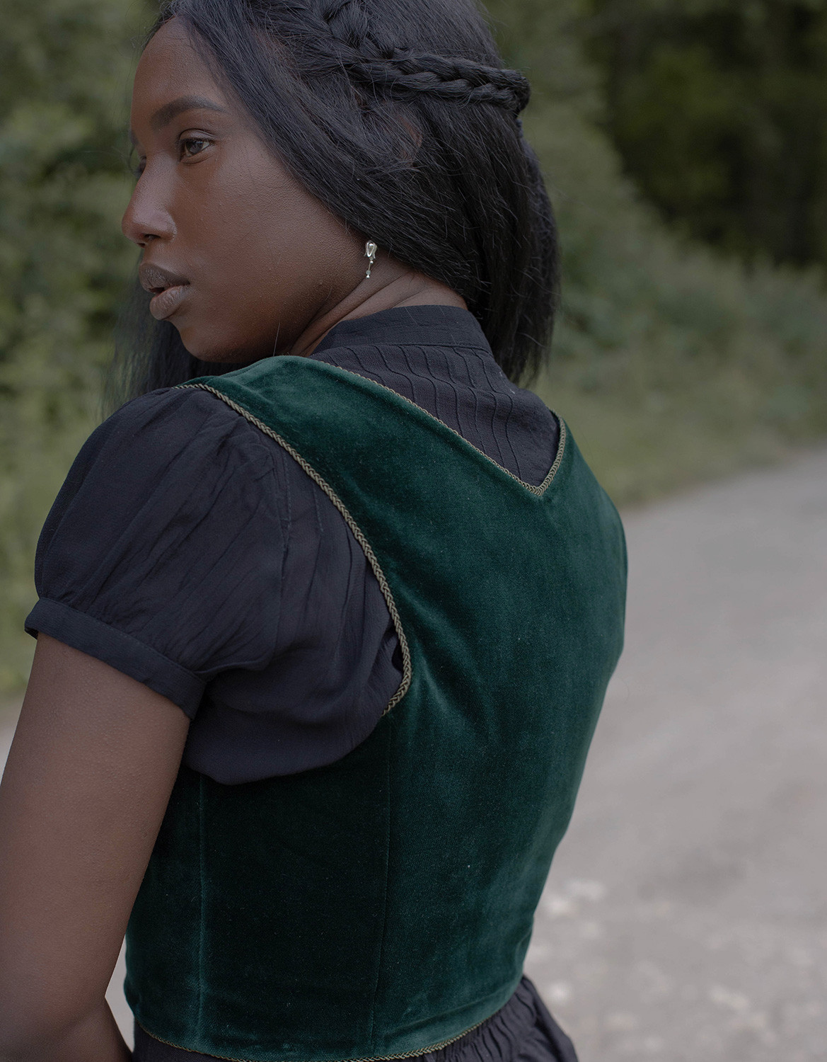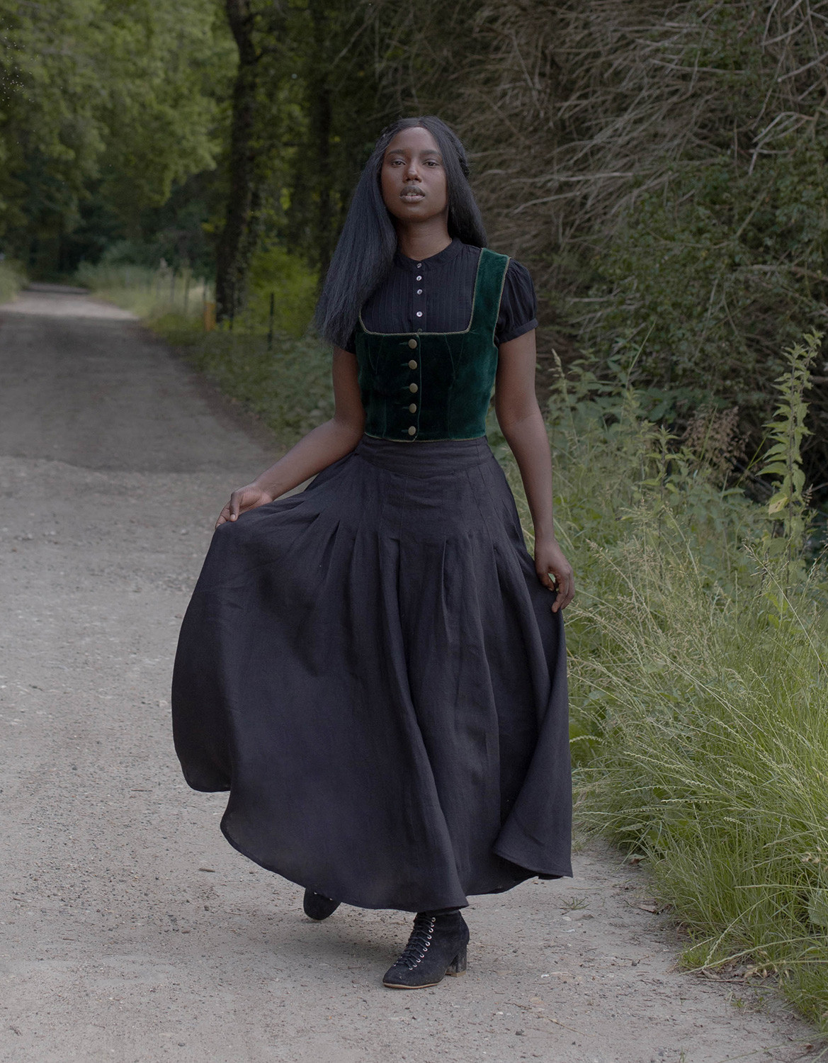 Description : Voici notre petite fierté, au plus proche de nos origines : le « Dirndl » autrichien en velours de coton. Il est gracieusement doublé d’un tissu fleuri. Les boutons sont une solution esthétique pour permettre des légers réglages : si vous êtes un peu couturière et avez besoin d’ajuster la taille, n’hésitez pas à les découdre et à les placer là où vous le souhaitez. Notez que cette astuce concernera uniquement des variations entre 1-3 centimètres.