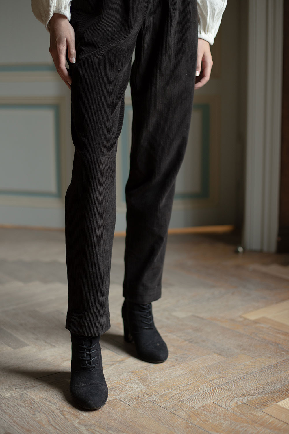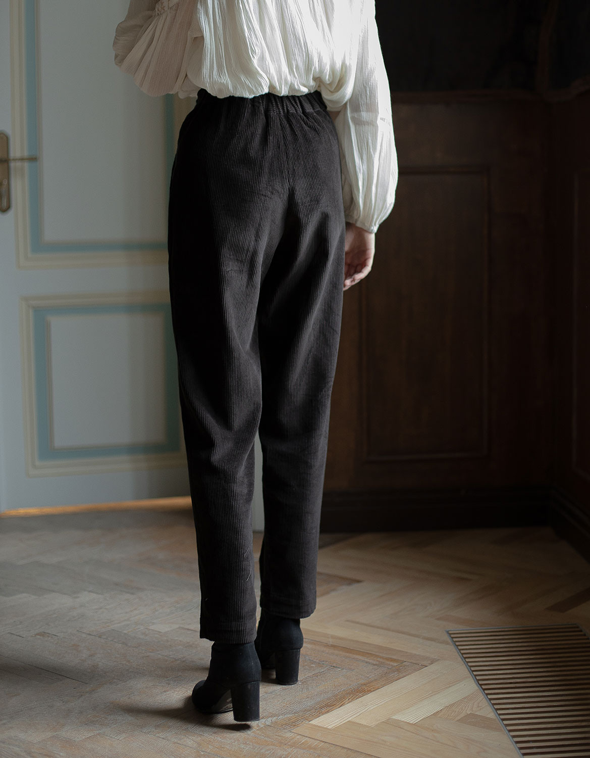 Pantalon "Yana" en velours côtelé noir