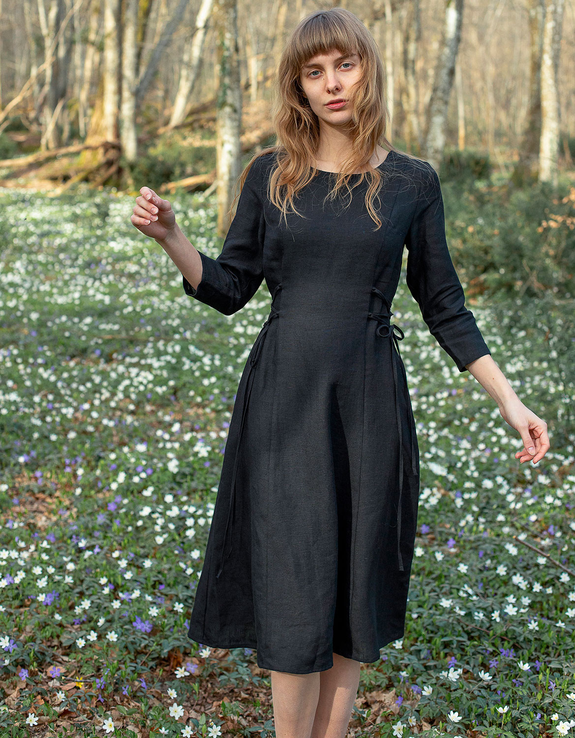 Voici notre iinterprétation d’un « Kirtle » médiéval, en lin lavé 200gr, sobre et épuré. Agréable à porter et facile à régler à la talle grâce aux nœuds sur le côté. Le volume de la robe est modéré, pour respecter la forme longiligne et féminine du Kirtle original. Cette robe fait également penser aux habits féminins à la fin de l’ère viking. Avec poches.