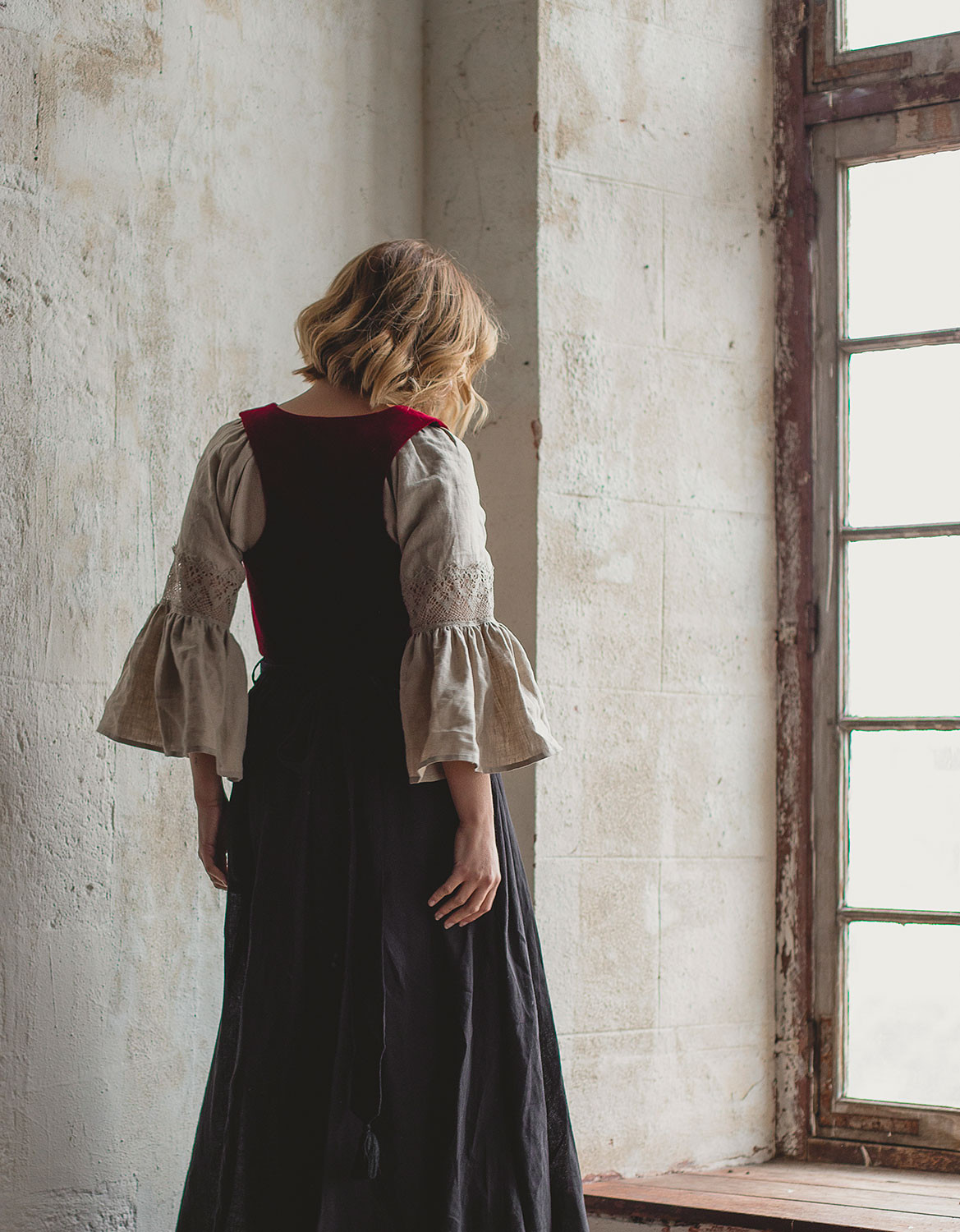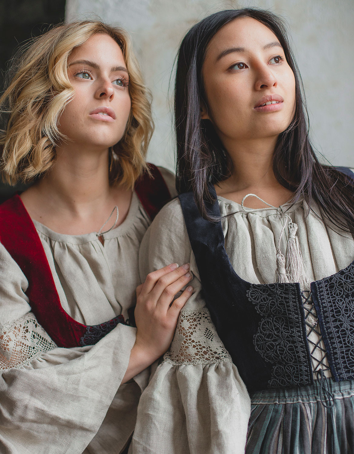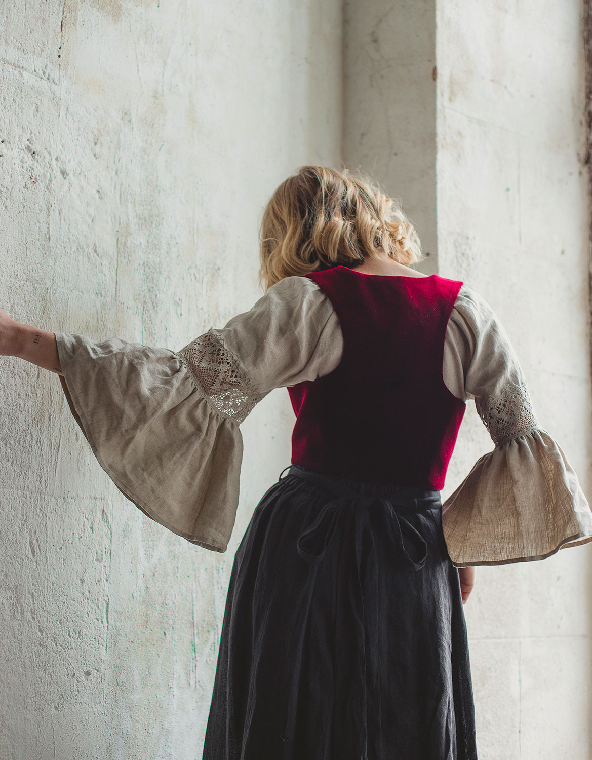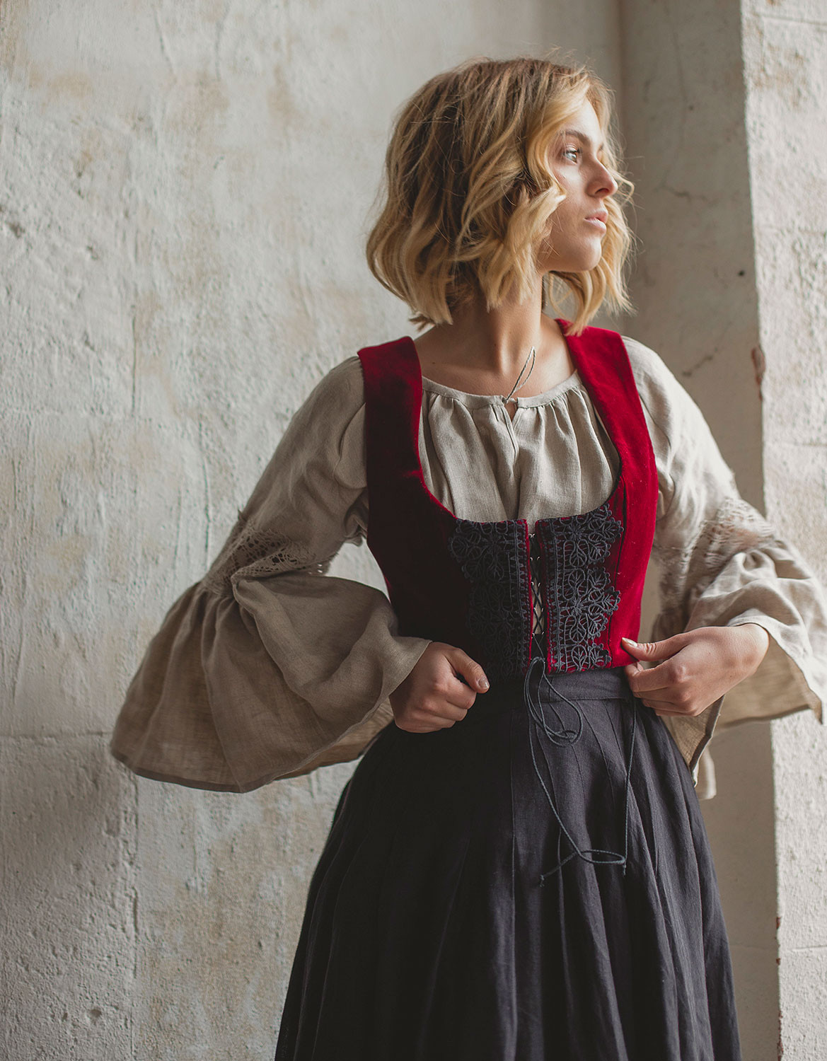 Bustier bas inspiré du folklore Serbe, en velours de coton, avec un joli laçage sur le devant. Le bustier a été développé de façon à marier les formes harmonieusement, peu importe le volume de la poitrine.
