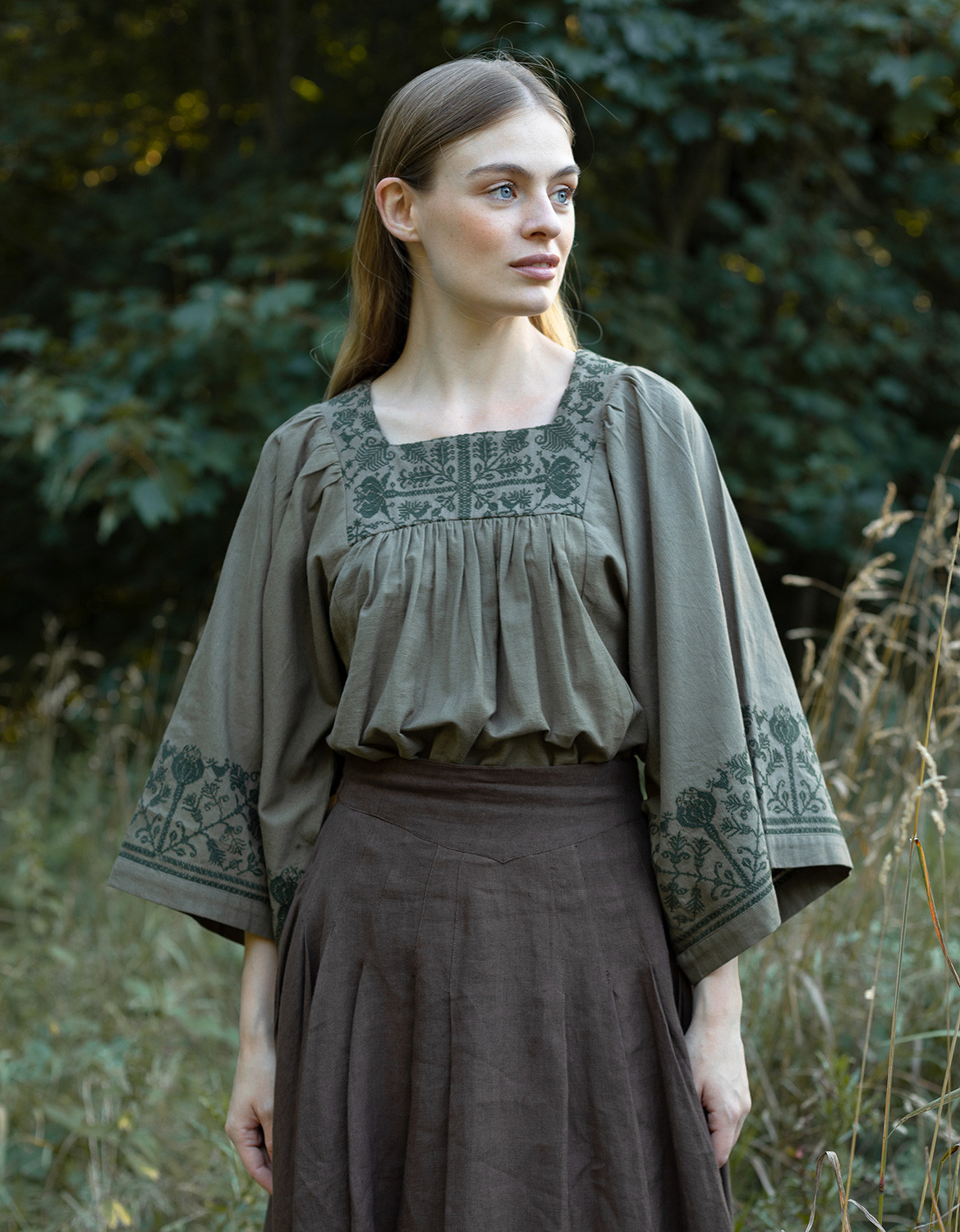 Description : Haut en coton bio avec manches ¾ évasées, décorée de somptueuses broderies de style hongrois.