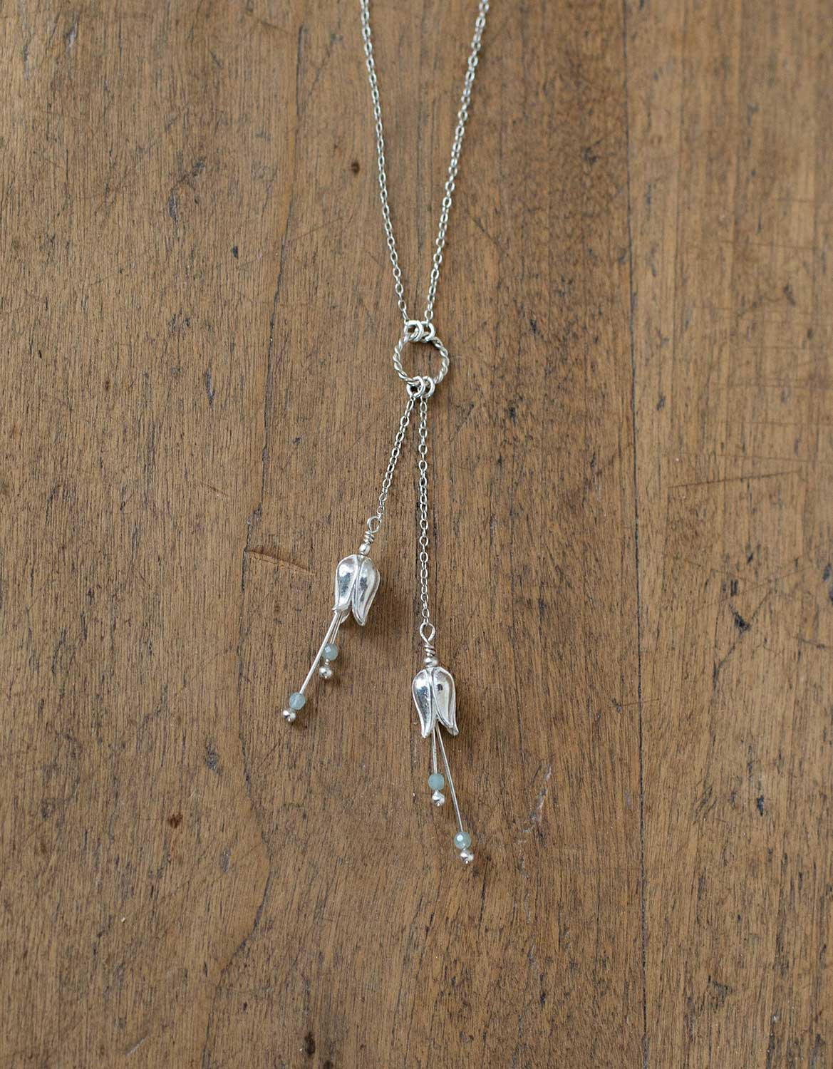 Collier entièrement en argent 925 et des petits pistils de aiguemarine.