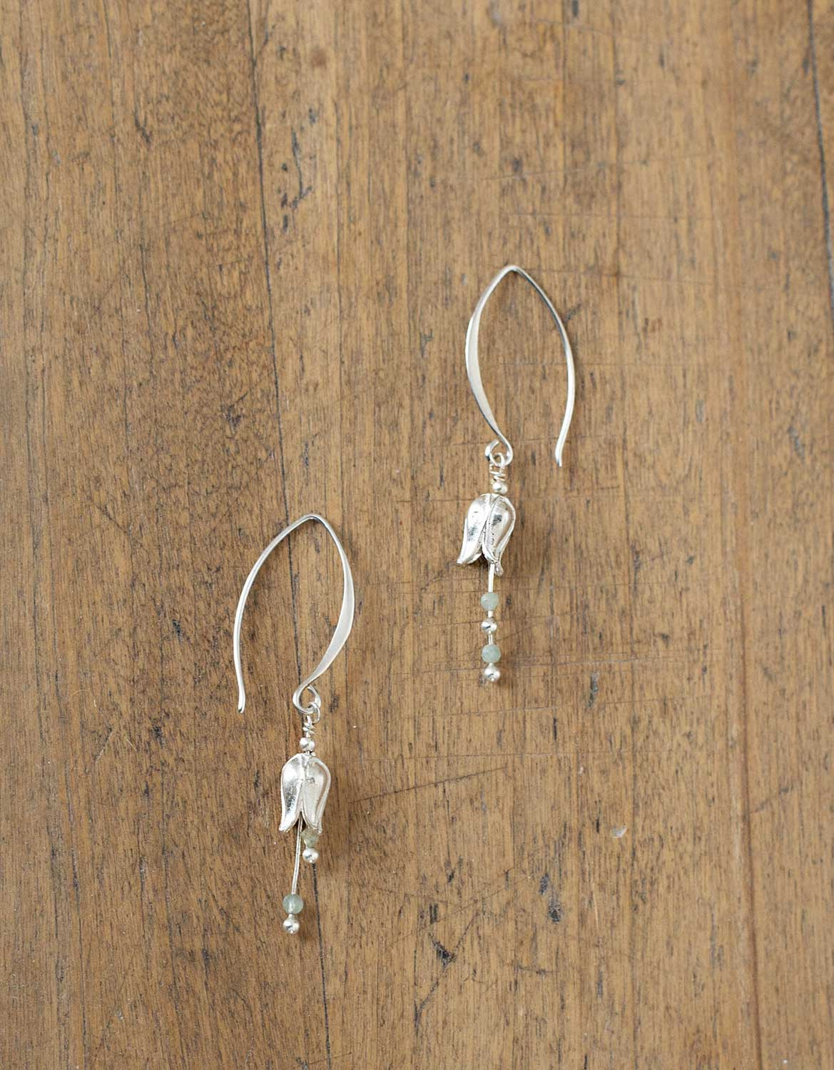 Adorables petites clochettes décorées de pistils avec des perles de aiguemarine, à mettre à toutes les occasions sans limites de jour ou en soirée pour un style féerique et romantique.