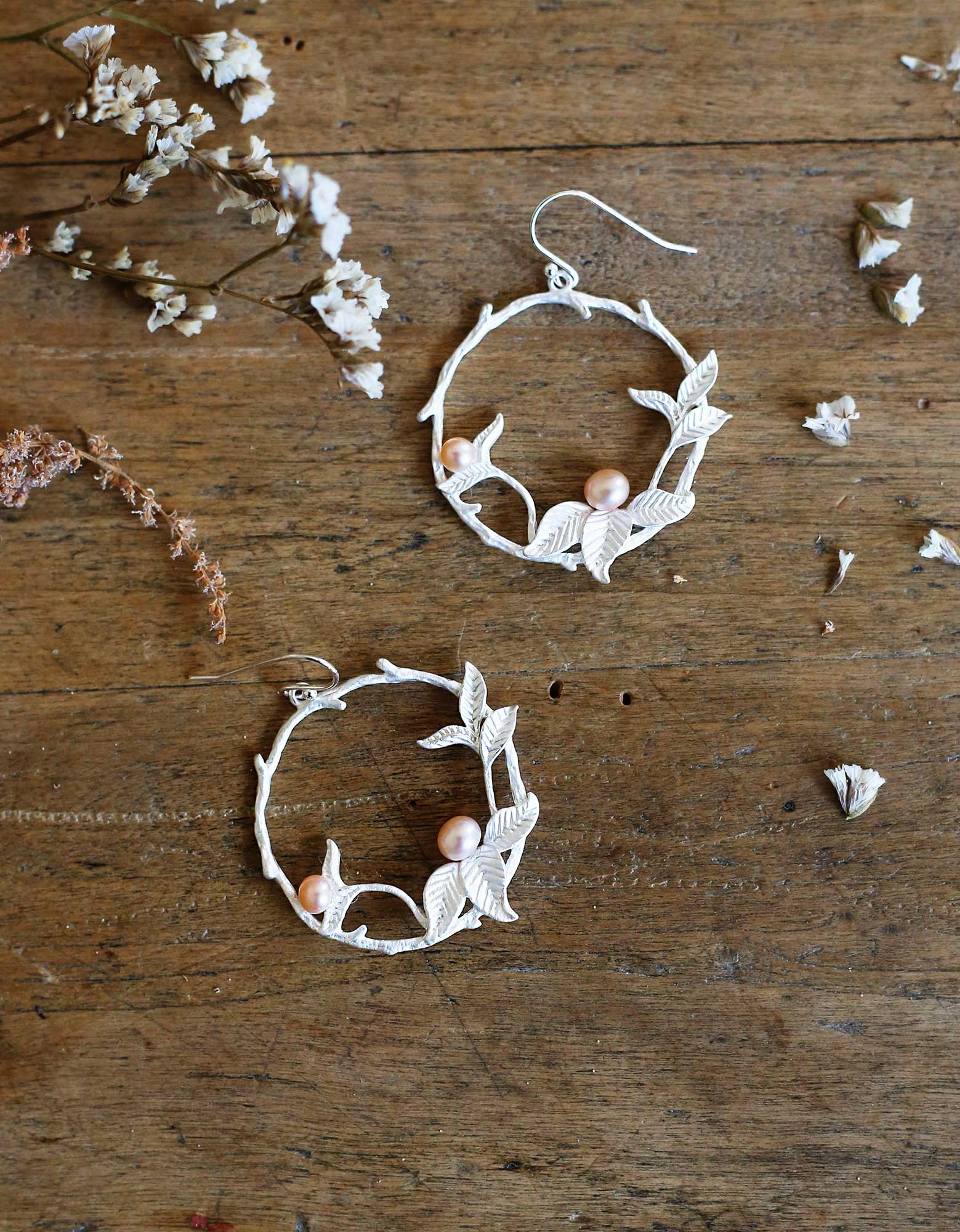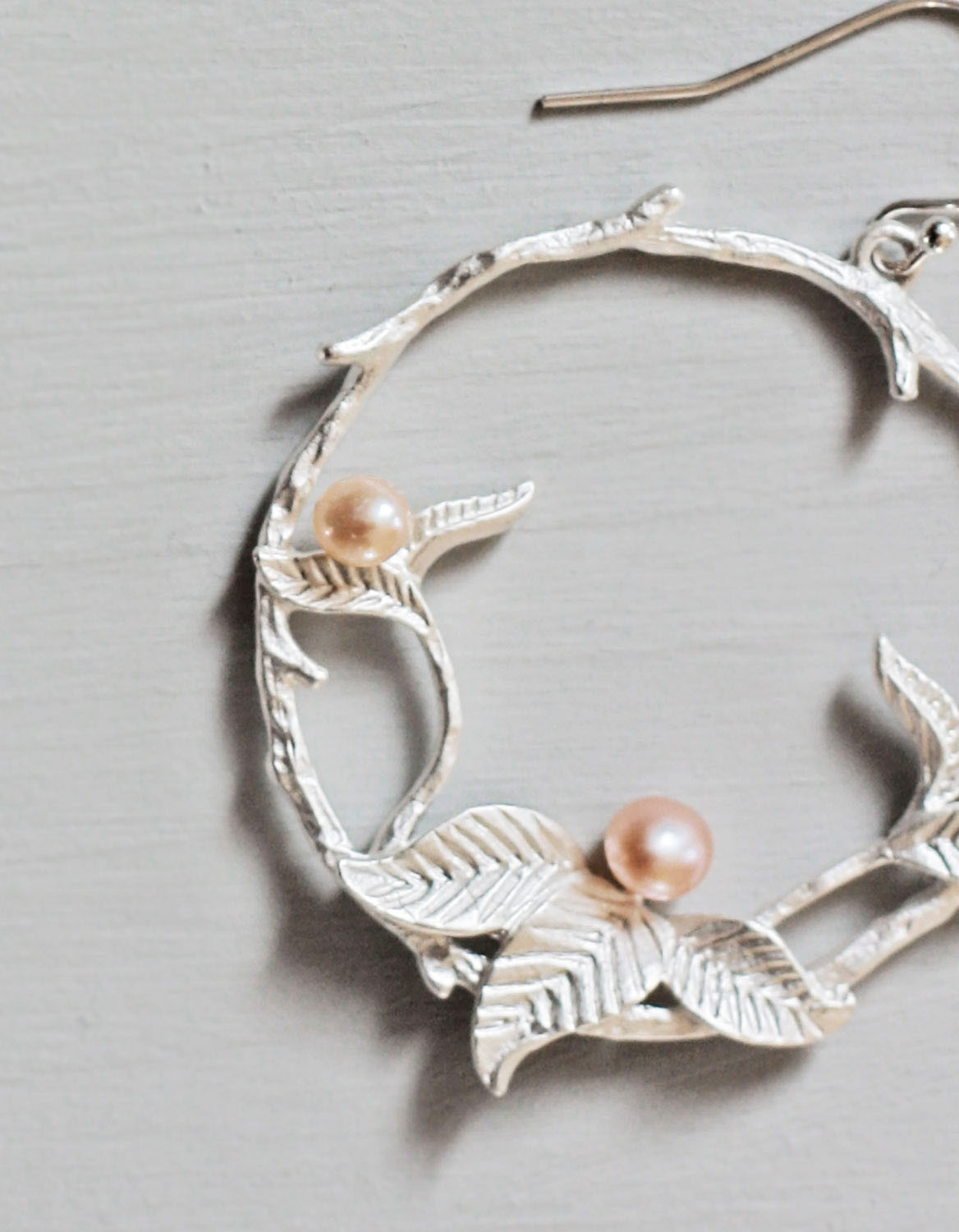 Boucles type créoles elfiques décorées de perles d’eau douce.