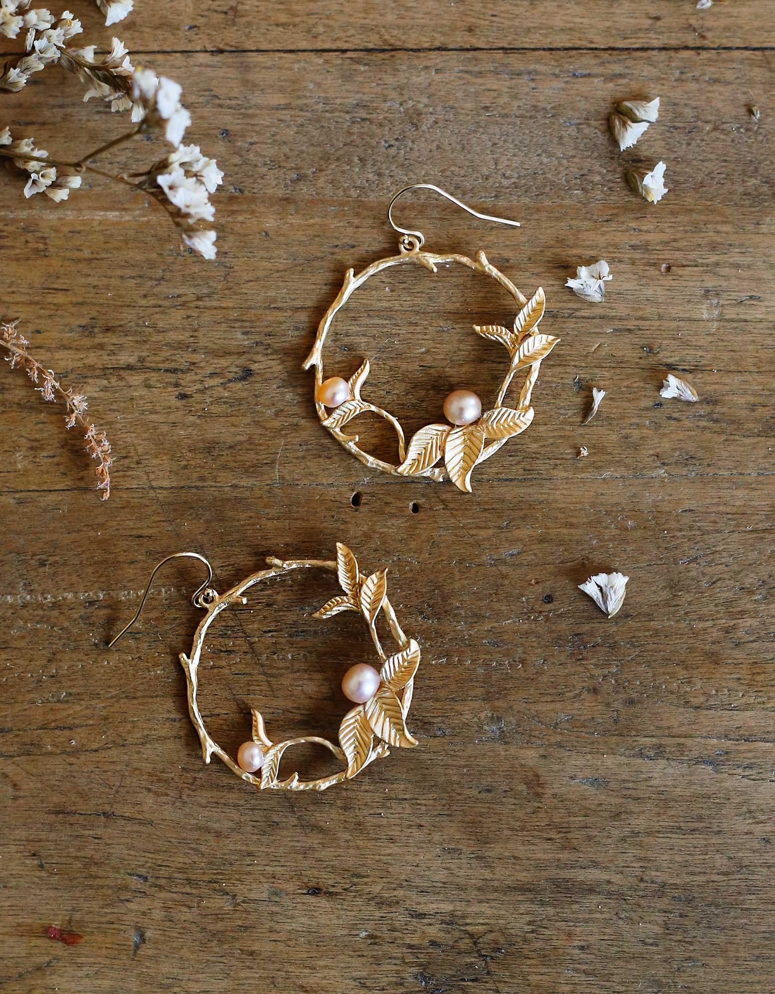 Boucles type créoles elfiques décorées de perles d’eau douce.