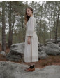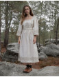 Description : robe longue inspirée du folklore letton : la broderie illustre l'arbre de la vie « Austra » Austras koks, variacija. La robe a des poches.