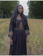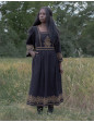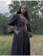 Description : robe longue inspirée du folklore letton : la broderie illustre l'arbre de la vie « Austra » Austras koks, variacija. La robe a des poches.