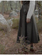 Description : robe-croisée en canevas de coton brodé, doublée de voile de coton. Tissu consistant avec un tomber lourd et élégant. Coupe cintrée, très évasée en bas.