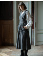 Description : Robe-chasuble croisée en 100% pure laine tweed, avec poches. Version améliorée avec une fermeture éclair cachée pour compléter la poche cotée gauche.