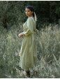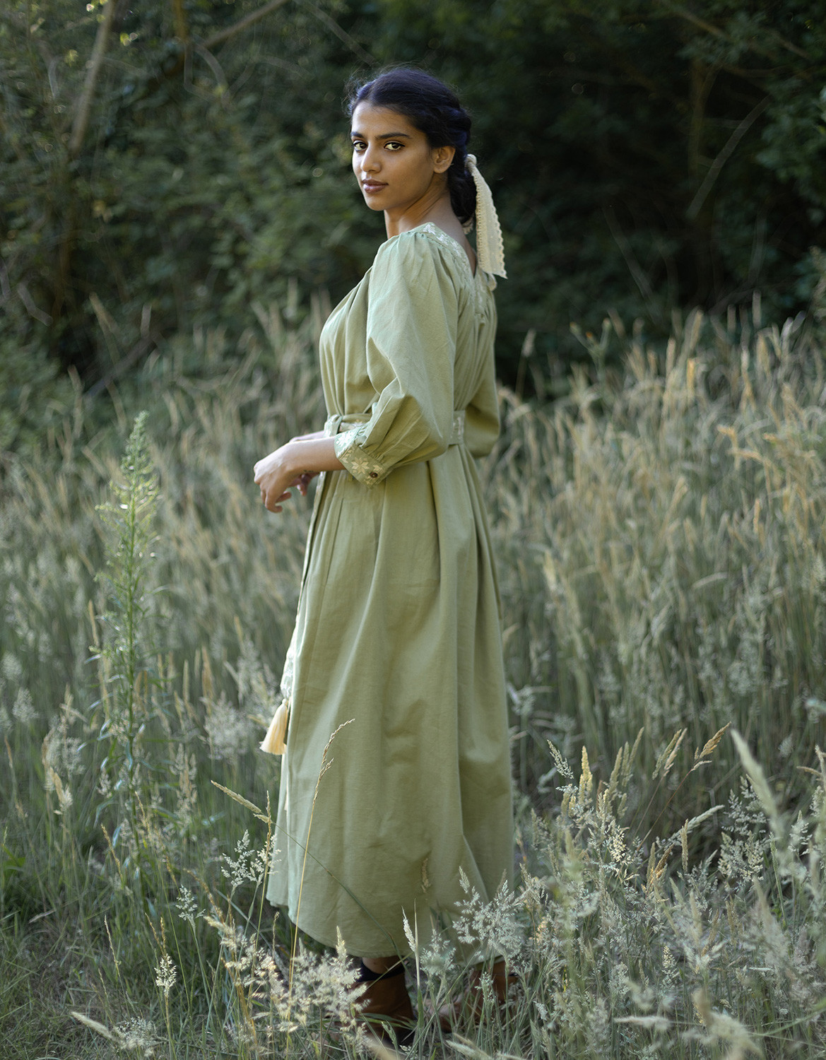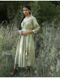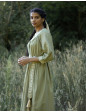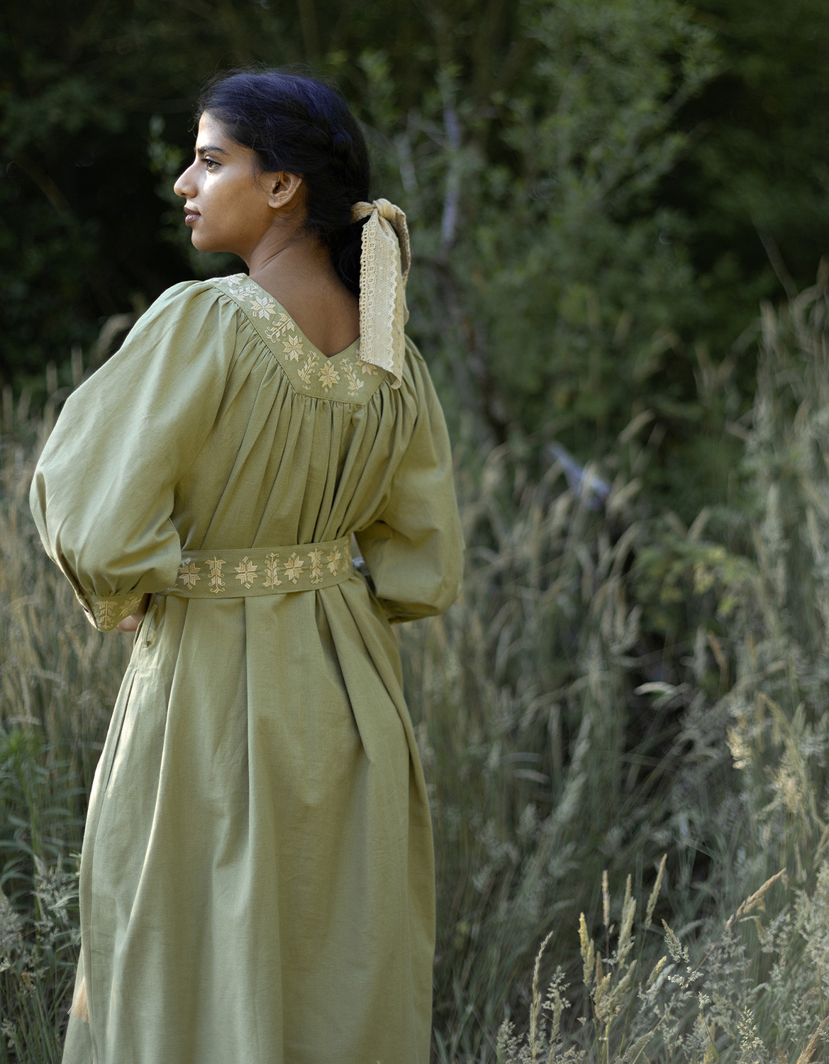 Description: robe longue à col V avec des manches ¾ et broderies illustrant la traditionnelle étoile du matin, très populaire dans les pays scandinaves et slaves.