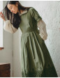 Robe structurée, en canevas de coton épais, arborant une broderie de style ukrainien. La coupe est délicatement cintrée et flatteuse. Avec poches.