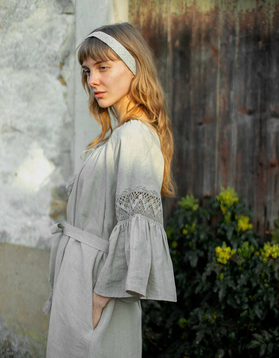 Robe "Svetlana" en lin naturel et dentelle de lin